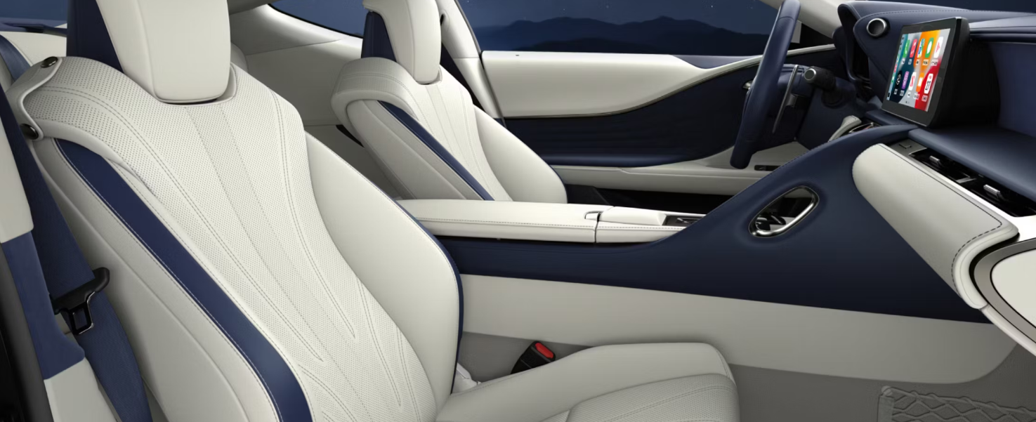 With a long 2,870 mm wheelbase, compact 920 mm front and 970 mm rear overhangs and a notably low hood, LC’s athletic profile is set off by a sweeping roofline, sensual curves, and wind-cutting silhouette. And set further apart by a series of inspired colours, including: Ultrasonic Blue Mica, Cloudburst Grey, and Iridium. LC’s interior cabin is designed for driving pleasure and luxurious comfort. The cockpit is an invitation to high-spirited driving.