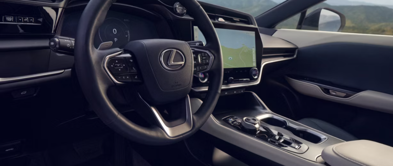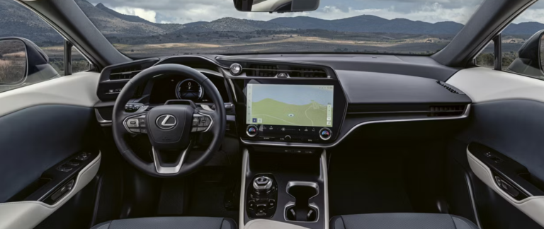 Lexus designers have crafted a luxury electric SUV that captures the sense of seamless acceleration and dynamic torque unique to Battery Electric Vehicles (BEVs). The Lexus spindle body architecture clearly expresses the Lexus RZ’s athletic proportions, aerodynamic efficiency, and unique personality. The sleek minimalist aesthetic continues inside giving the spacious interior a bright airy feel as luxurious as it looks. Lexus RZ’s exterior design adds dynamic handling to the agile ride. The rear flares visually evoke the powerful traction produced by the rear motor. A precisely honed character line creates an arrow-like profile with a flowing roofline to minimize drag, reduce noise and lend stability at high speeds.