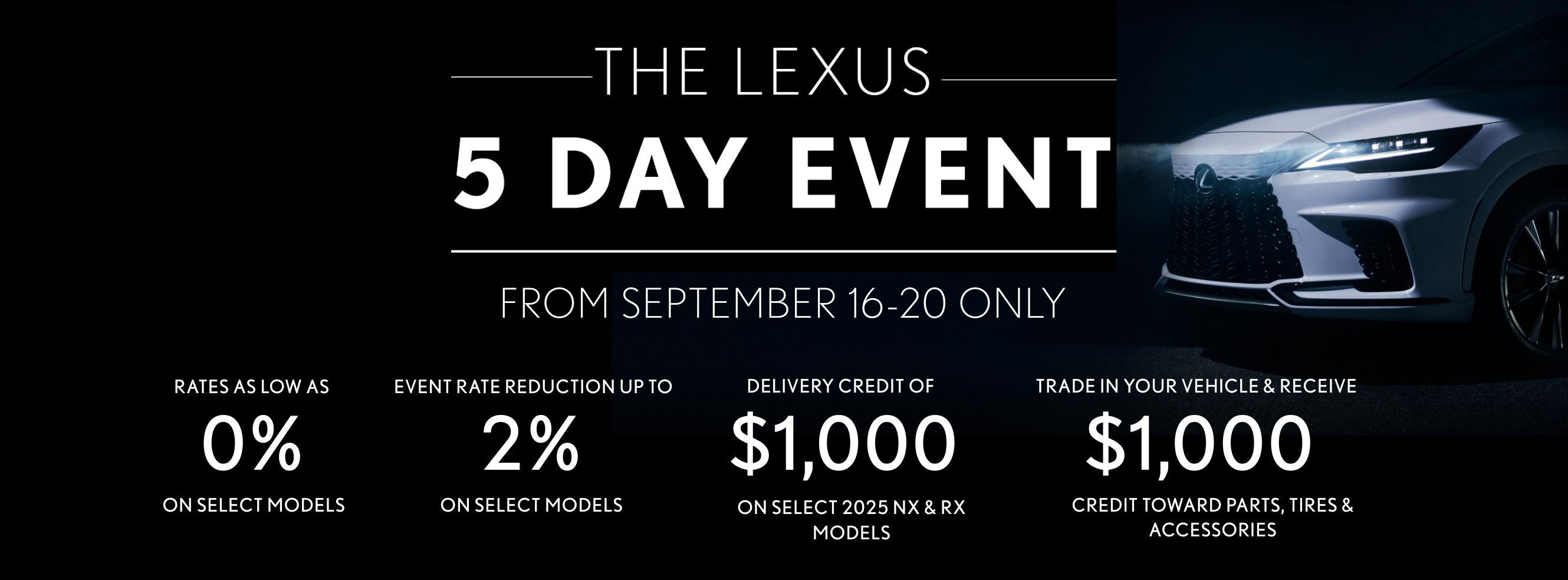 - Rates as low as 0% on select Lexus models